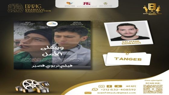 الفيلم التربوي “ويبقي الامل” :جائزة افضل تشخيص ،ضمن جوائز مهرجان أزان للفيلم التربوي المنظم بمدينة تزنيت ما بين 16 و18…
